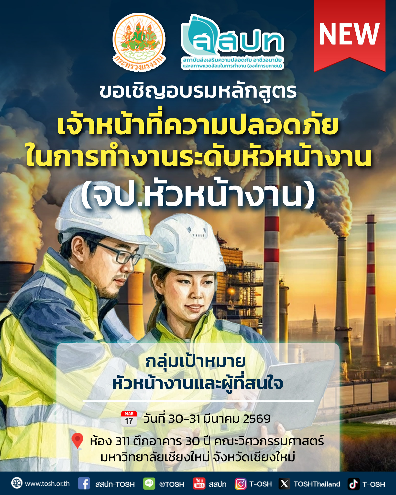 หลักสูตร “เจ้าหน้าที่ความปลอดภัยในการทำงานระดับหัวหน้างาน (จป.หัวหน้างาน)” จังหวัดเชียงใหม่
