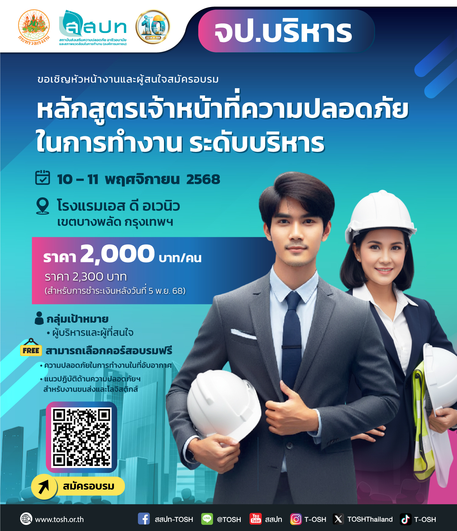 หลักสูตร “เจ้าหน้าที่ความปลอดภัยในการทำงานระดับบริหาร (จป.บริหาร)”